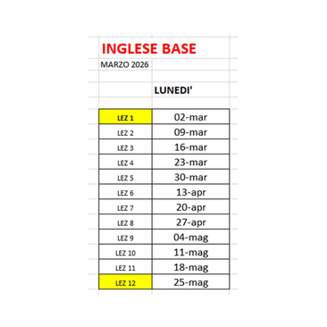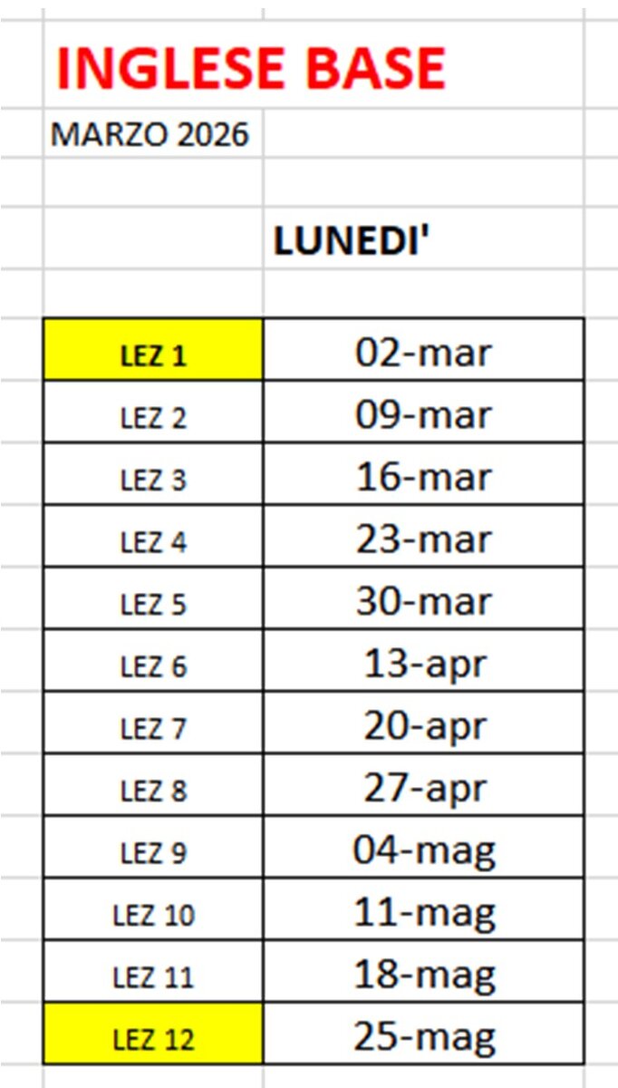 ORARI CORSI "INGLESE BASE " MARZO 2026