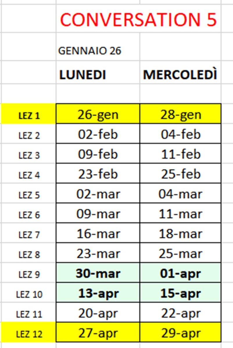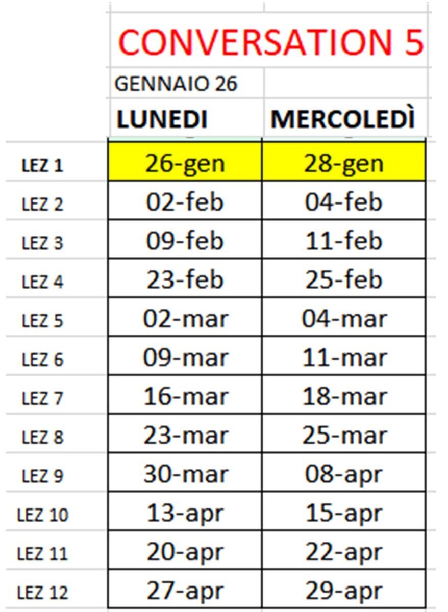 ORARI CORSI CONVERSATION CLASS 5