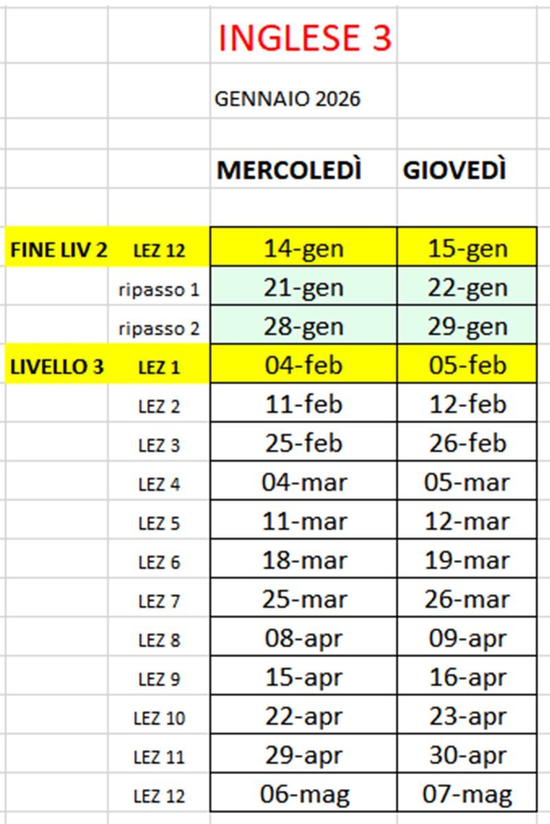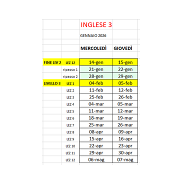 ORARI CORSI livello 2 TERMINATI