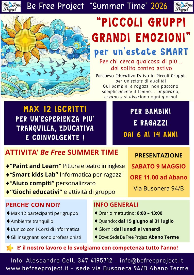 - per info corsi ed iscrizioni: info@befreeproject.it
