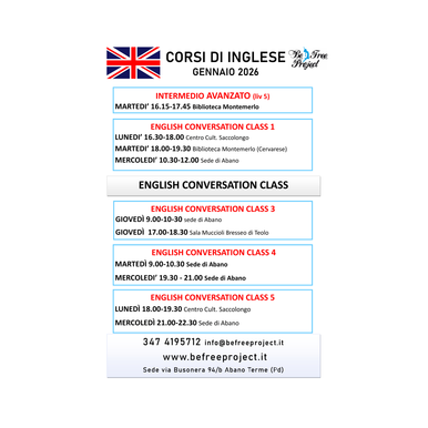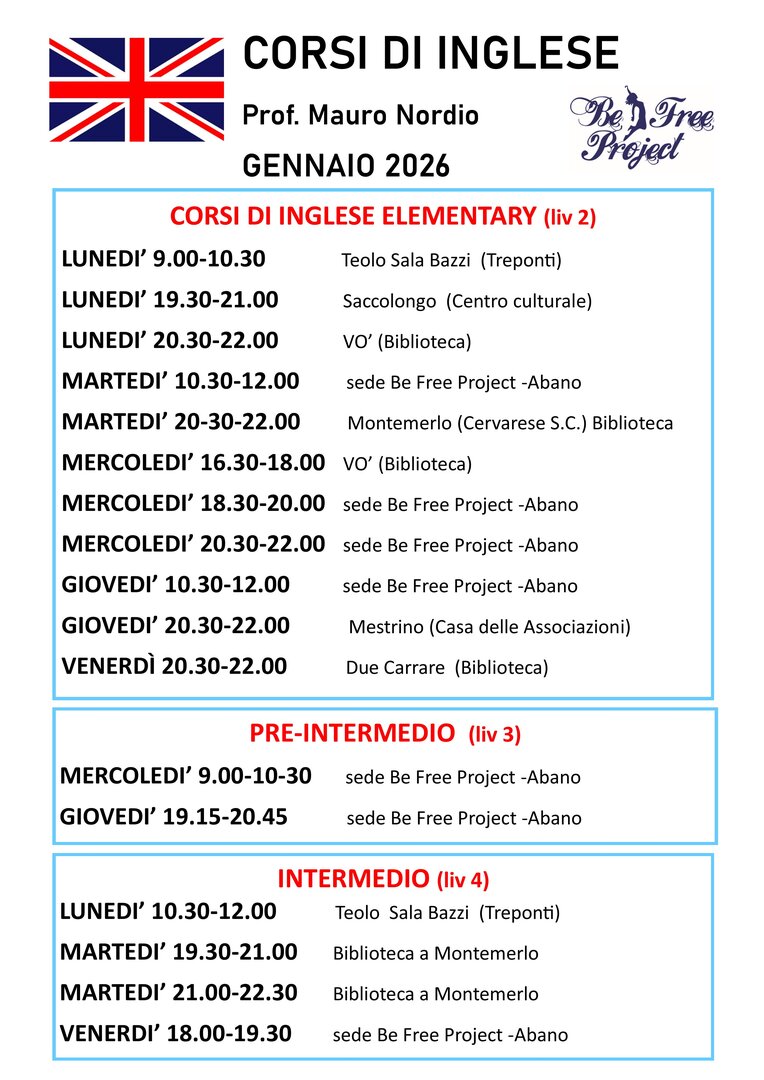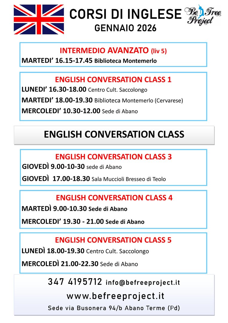 PROSSIMI CORSI di INGLESE GENNAIO 2026