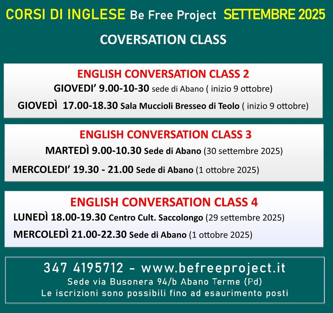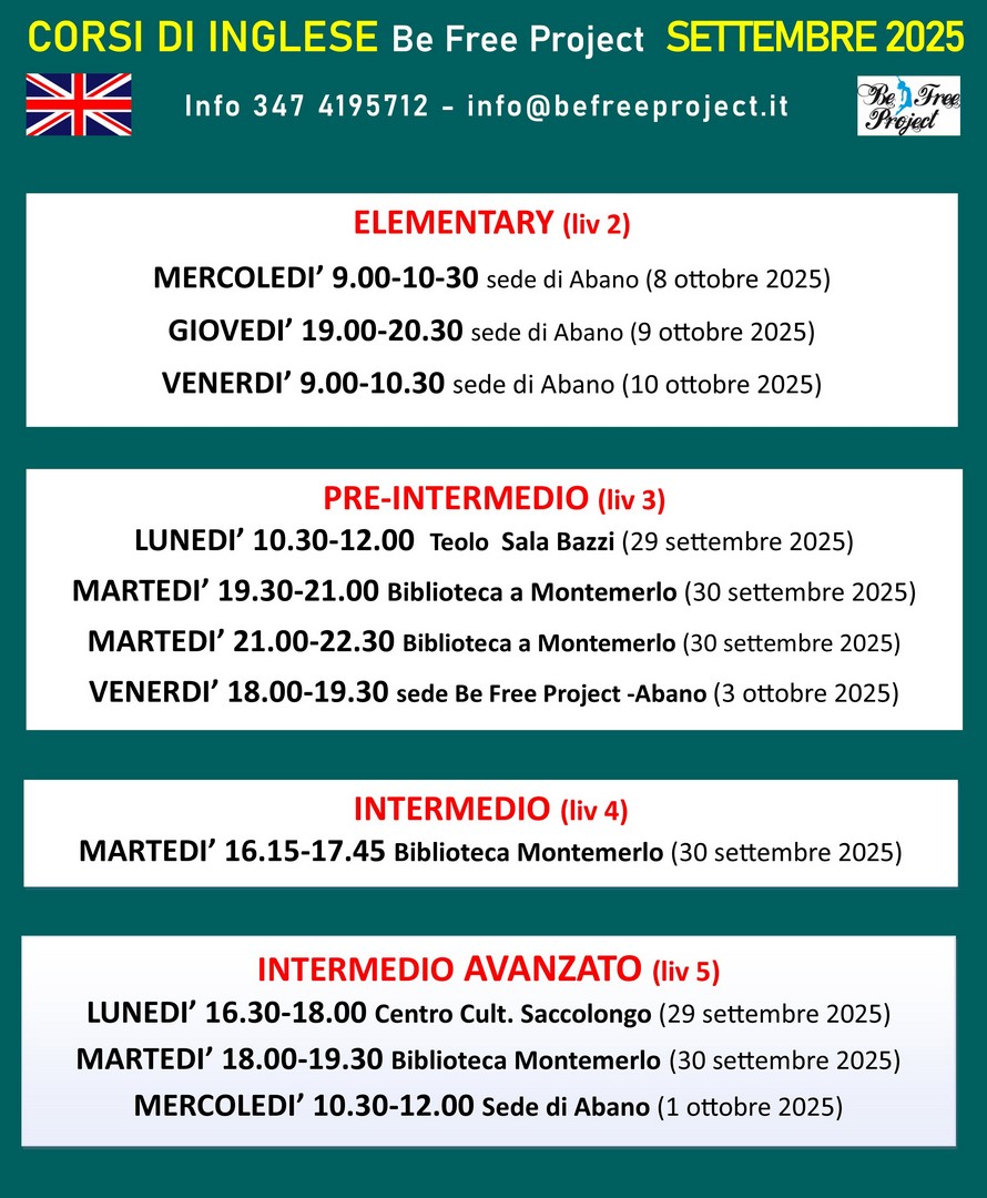 PROSSIMI CORSI di INGLESE OTTOBRE 2025