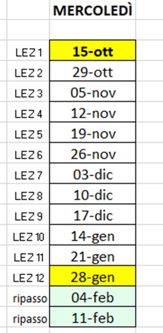 MERCOLEDI' 18.00-19.30 Mestrino
