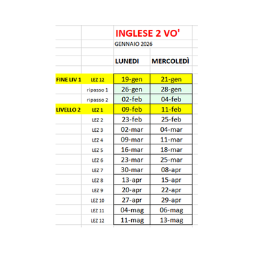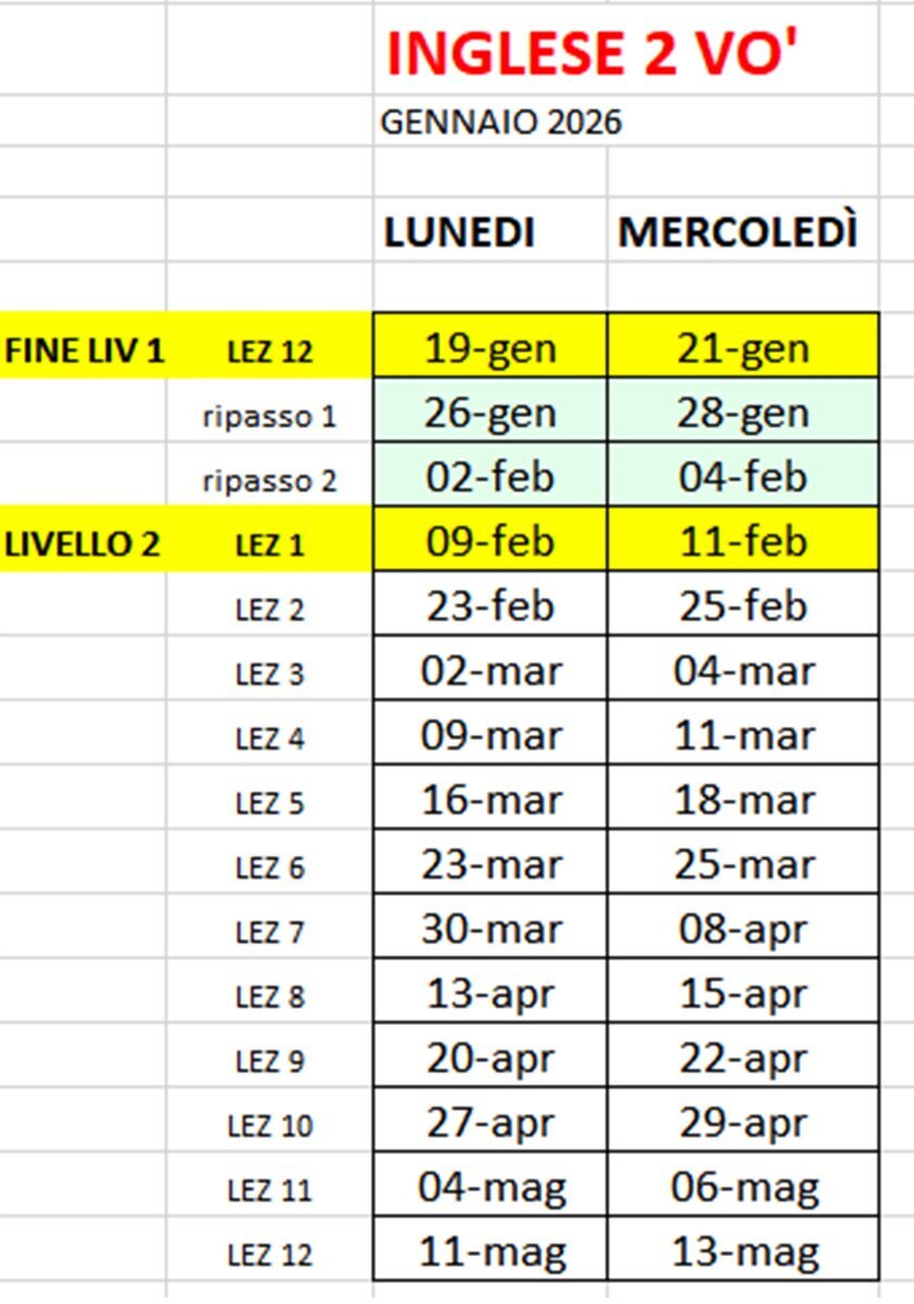 ORARI CORSI "INGLESE BASE " OTTOBRE 2025