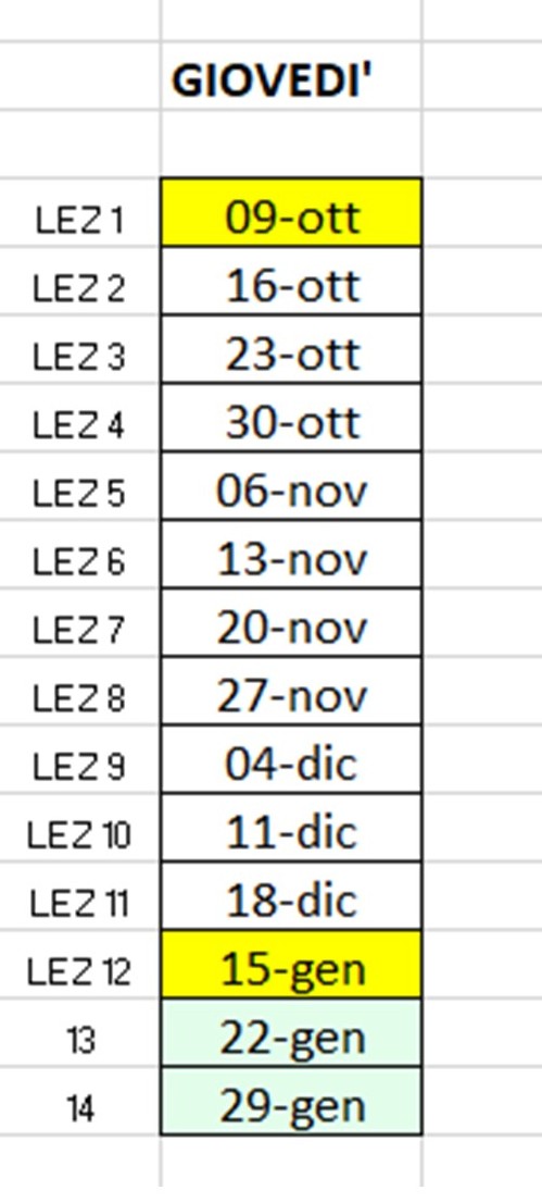 GIOVEDI' 9.00-10.30 Abano Terme nostra sede