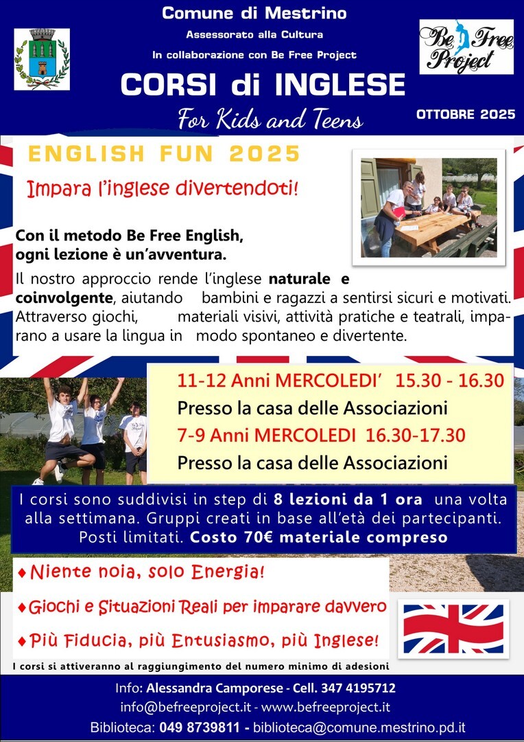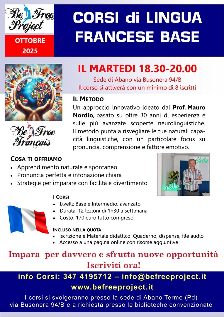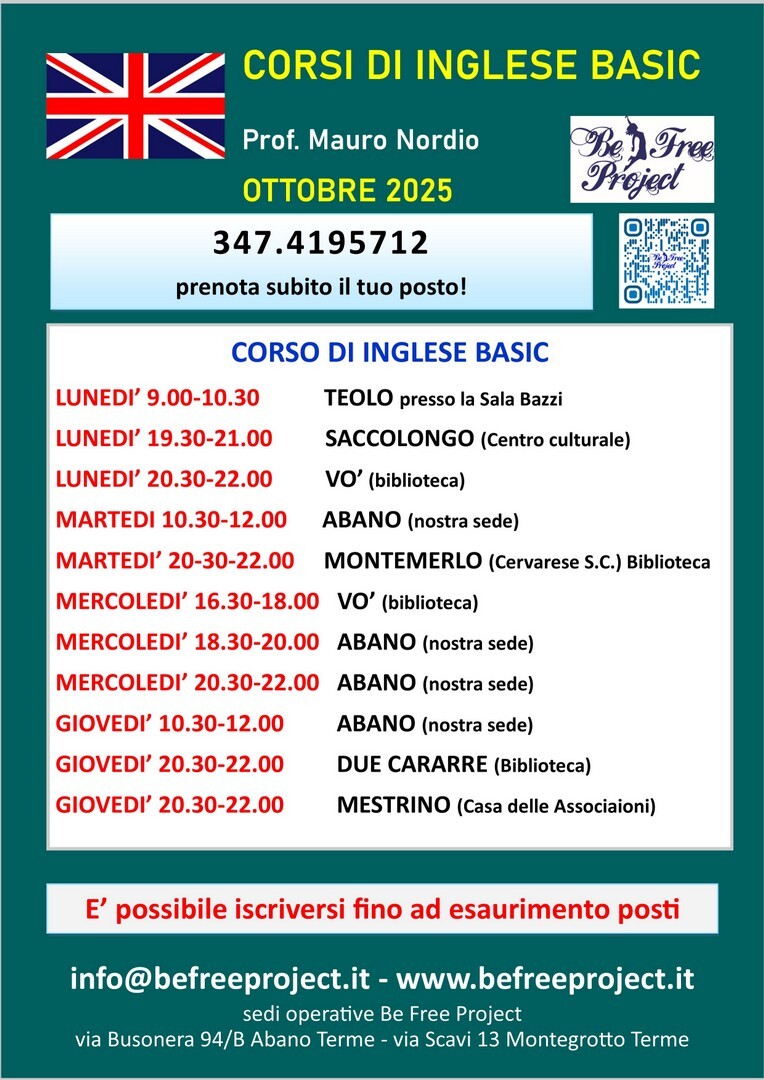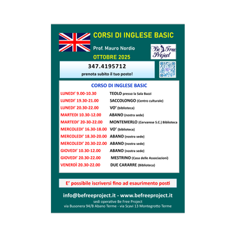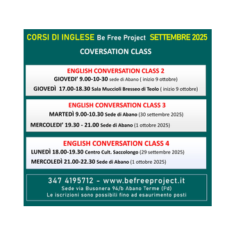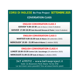 - Se il corso scelto viene confermato dalla Be Free Project il saldo va effettuato entro il 20 settembre
