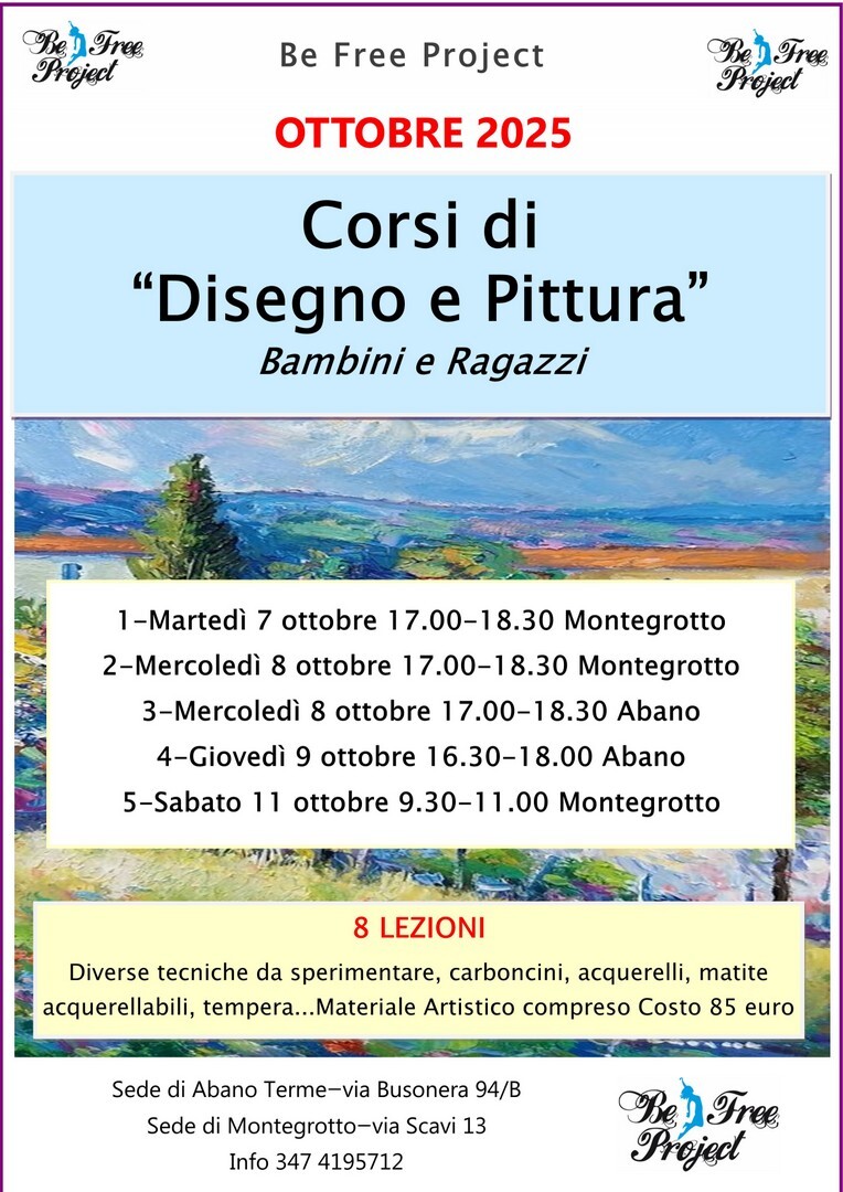 - Se il corso scelto viene confermato dalla Be Free Project il saldo va effettuato entro una settimana dall'inizio corso