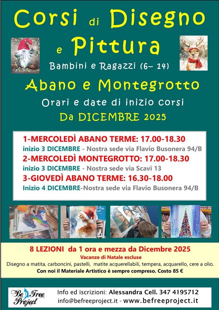 Nel costo sono compresi iscrizione,IL MATERIALE ARTISTICO: matite e attrezzatura da disegno, colori, cartoncini.