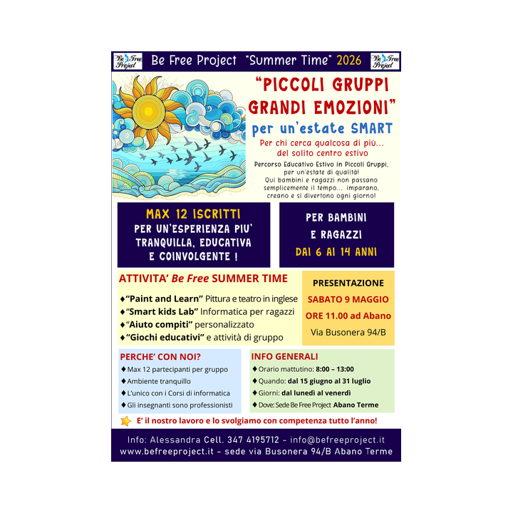 - per info corsi ed iscrizioni: info@befreeproject.it