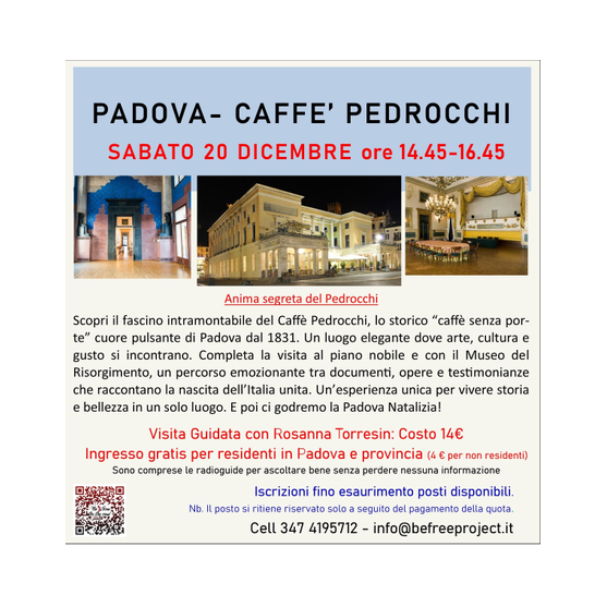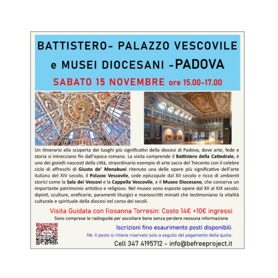 Costo: visita guidata 14€ + ingresso gratuito per residenti di Padova e provincia ( 7€ per gli altri)
